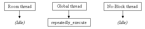 Finally, we come onto the No-Block thread. This thread is only used to run the repeatedly_execute_always and late_repeatedly_execute_always functions. Because these two are not allowed to run any blocking functions, this ensures that the thread never gets blocked and so it will always run, even when the other threads are busy: